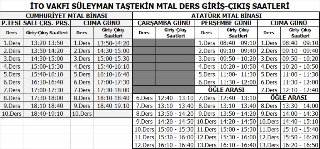 2025-2026 Eğitim Öğretim Yılı Okul Ders Giriş Çıkış Saatlarimiz Aşağıdaki gibidir. Tüm Öğrencilerimize Duyurulur.